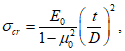 Д.4 Критическая продольная деформация при изгибе трубопровода принимается из получивших достаточное экспериментальное подтверждение теоретических разработок теории устойчивости цилиндрических оболочек по формуле