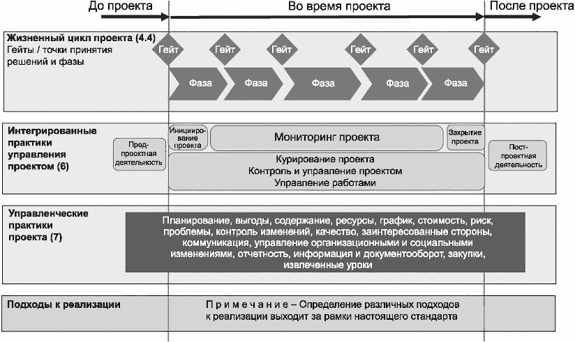В настоящем стандарте описываются концепции и практики управления проектом, которые важны и оказывают влияние на успех реализации проекта.