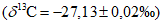 , относительно международного стандарта V-PDB (Венский стандарт изотопного состава углерода) по формуле