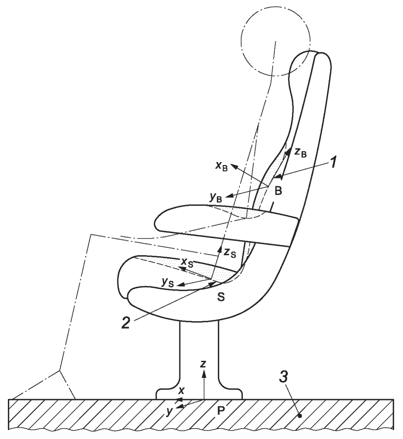 Поскольку отклик сиденья во время лабораторных испытаний с применением псевдослучайного возбуждения может существенно отличаться от наблюдаемого в реальных условиях, полученные результаты не следует сравнивать с какими-либо предельными (допустимыми) значениями. Целью таких испытаний является определение частотных характеристик системы "сиденье-человек" в точках на подушке и спинке сиденья в трех направлениях движения: x, y и z. Они наглядно демонстрируют направление передаваемого возбуждения, области частот с большим и малым усилением вибрации и степень этого усиления. Все это дает основу для сравнения сидений разных конструкций.