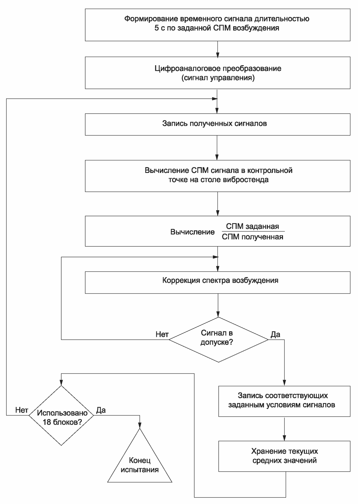 - внесение коррекции для учета передаточных свойств вибростенда и получения требуемых среднеквадратичных значений ускорения.