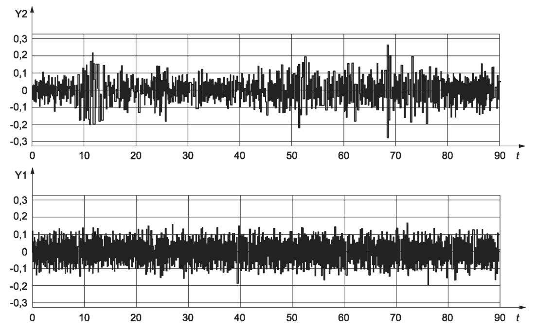 Y1 - воспроизведенный сигнал ускорения, м/с2; t - время, с
