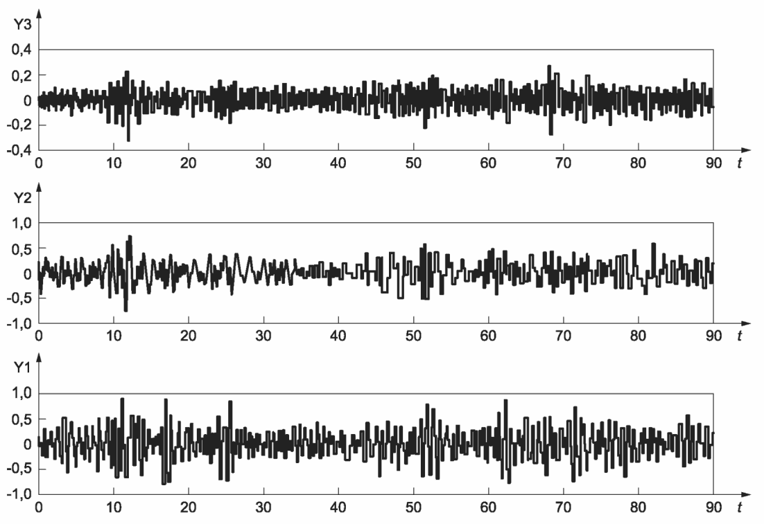 - генерирование независимых 90-секундных выборок для каждого из трех направлений возбуждения с помощью генератора случайных чисел;