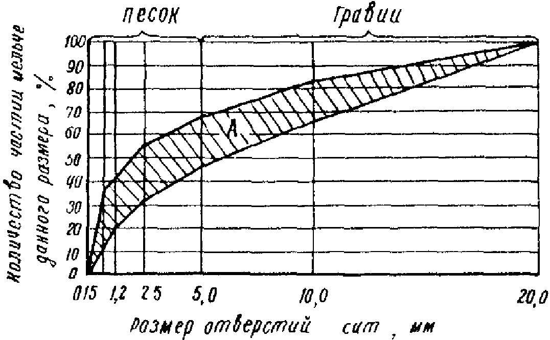 Размер частиц заполнителя, мм | 0,15 - 0,3 | 0,3 - 0,6 | 0,6 - 1,2 | 1,2 - 2,5 | 2,5 - 5,0 |