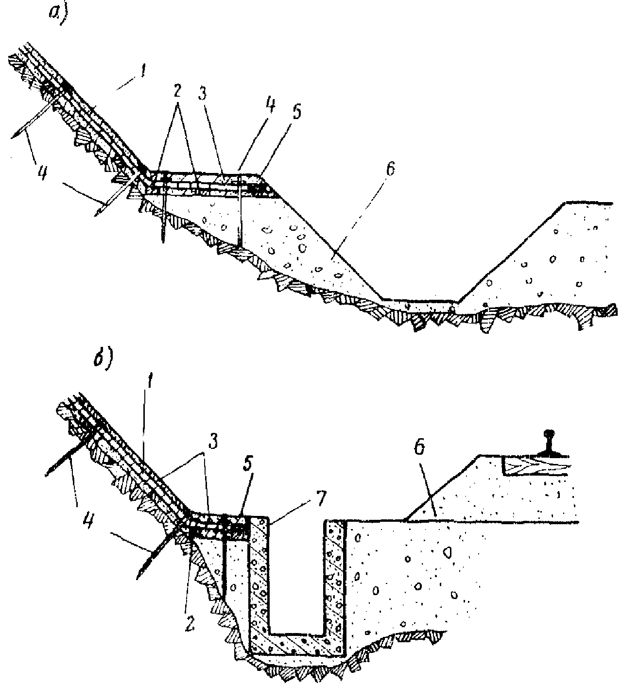 5 - защитный слой на откосе; 6 - монтажный анкер;