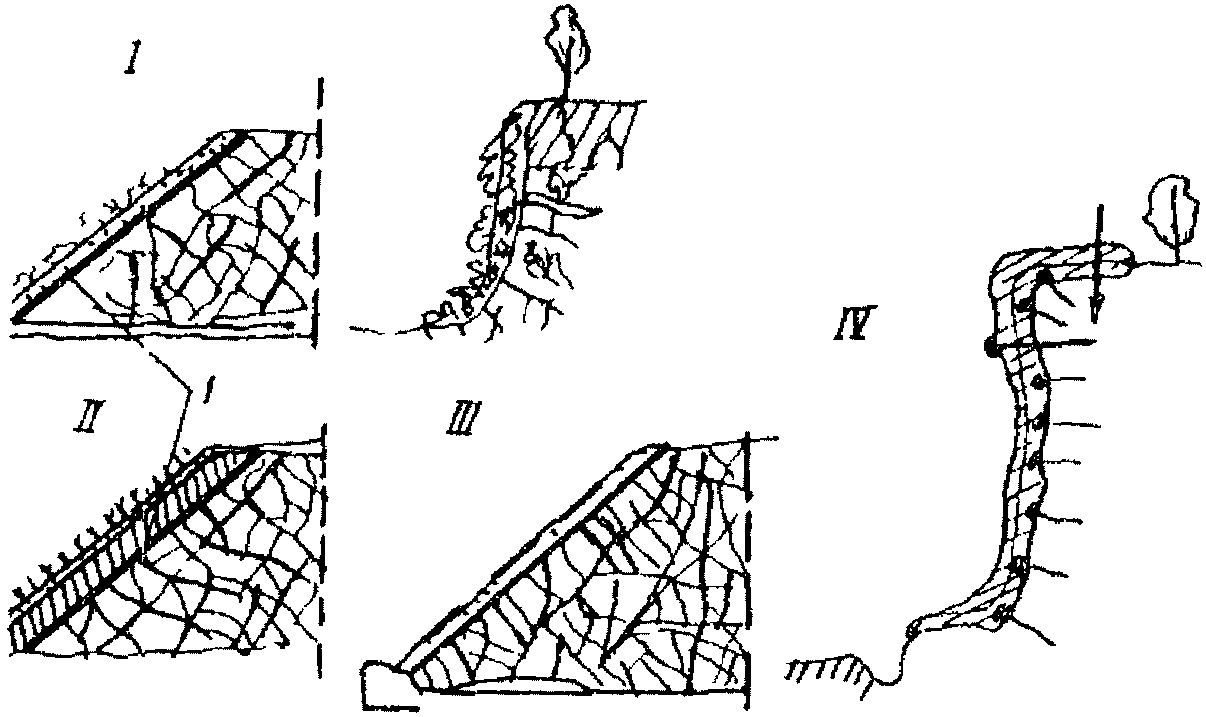 насыпи; III - решетчатые конструкции насыпей; IV - защитные