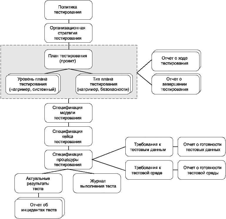 Каждый из трех процессов менеджмента тестирования формирует одну основную часть тестовой документации. План тестирования формируют в результате разработки стратегии и планирования тестирования, отчеты о состоянии тестирования - для документирования хода тестирования в процессе мониторинга и контроля тестирования, отчет о завершении тестирования - для подведения итогов тестирования.