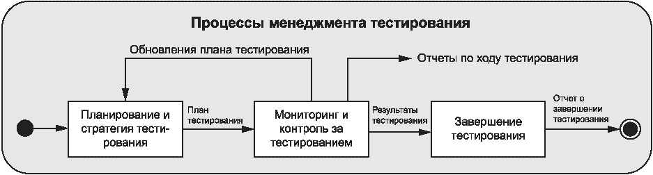 Менеджмент тестирования описывается процессами менеджмента тестирования, показанными на