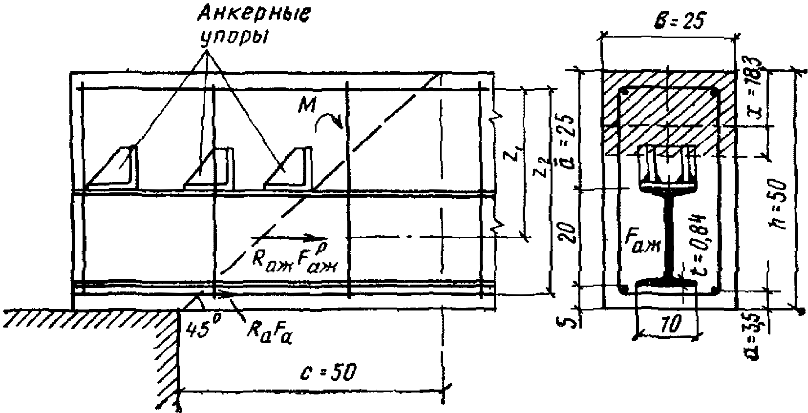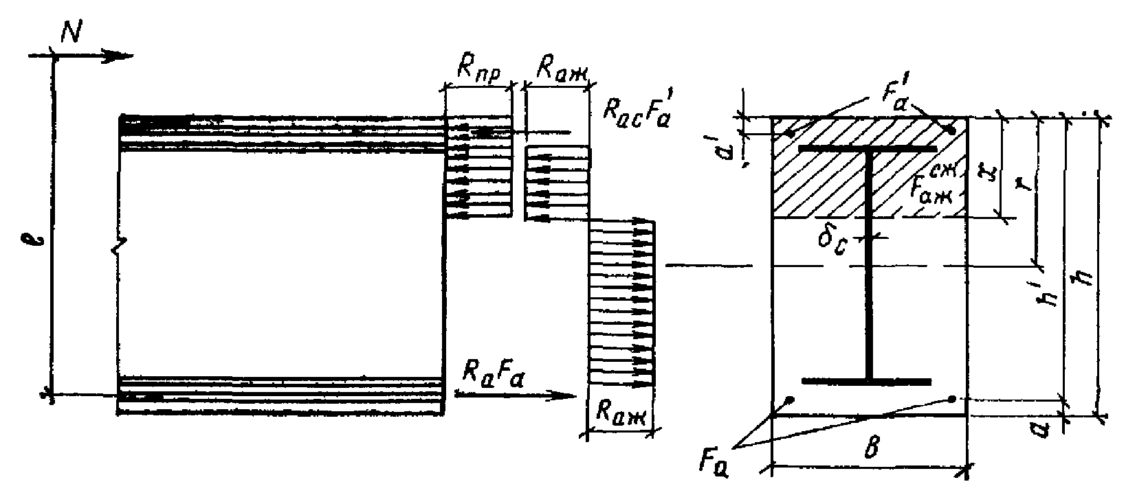 Rаж - расчетное сопротивление жесткой арматуры растяжению, сжатию;