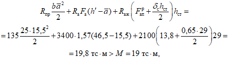 Wпл - пластический момент сопротивления жесткой арматуры, равный Wпл = 2S, где S - статический момент половины сечения жесткой арматуры относительно геометрической оси;