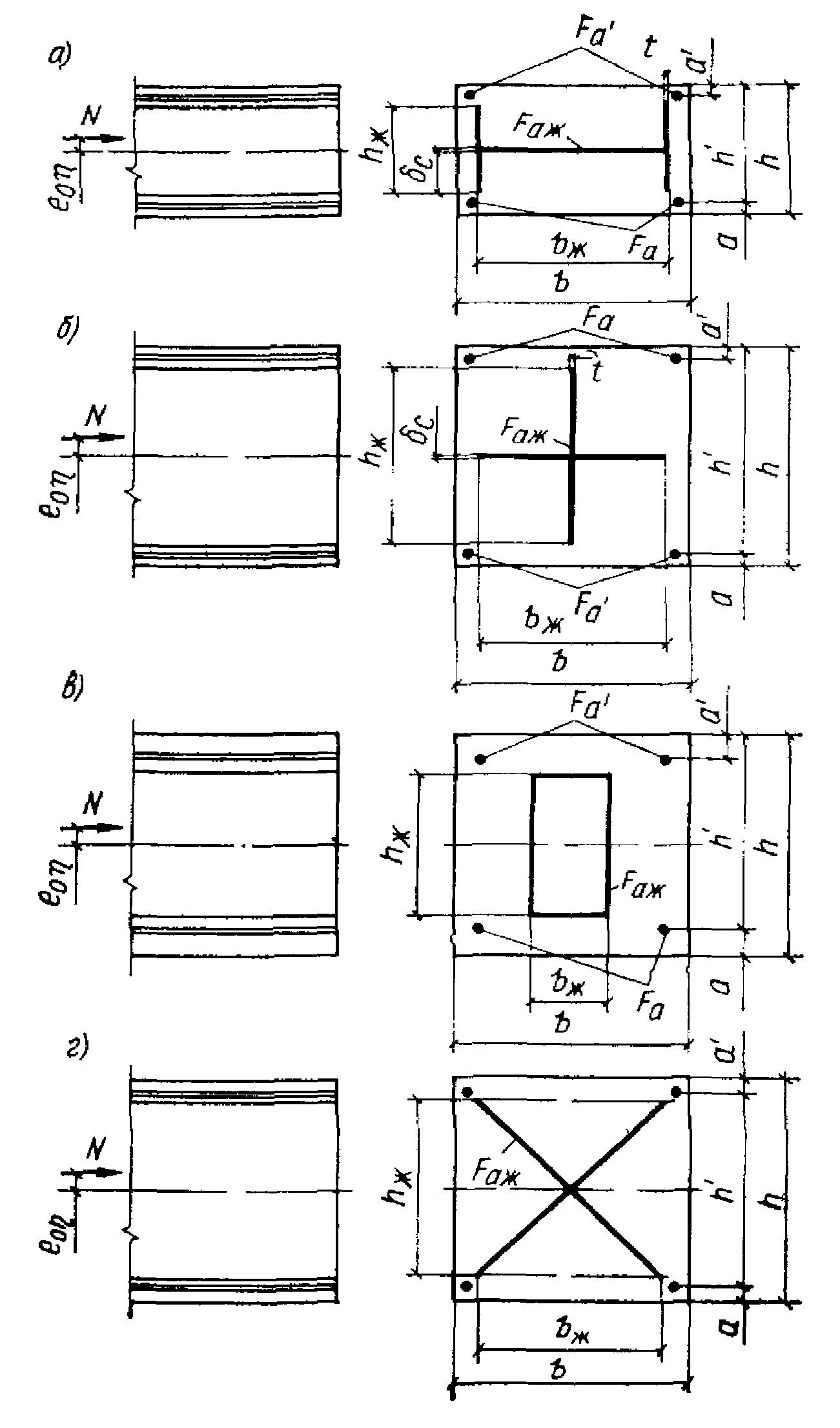 Жесткую арматуру типа сердечник, крестового и крестово-диагонального и коробчатого сечения рекомендуется применять при малых эксцентриситетах с соблюдением рекомендаций
