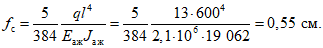 fс = 1,25 + 0,55 = 1,8 см < 2,5 см (2,5 см - предельно допустимый прогиб согласно главе
