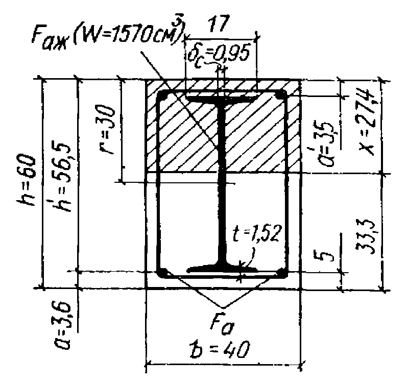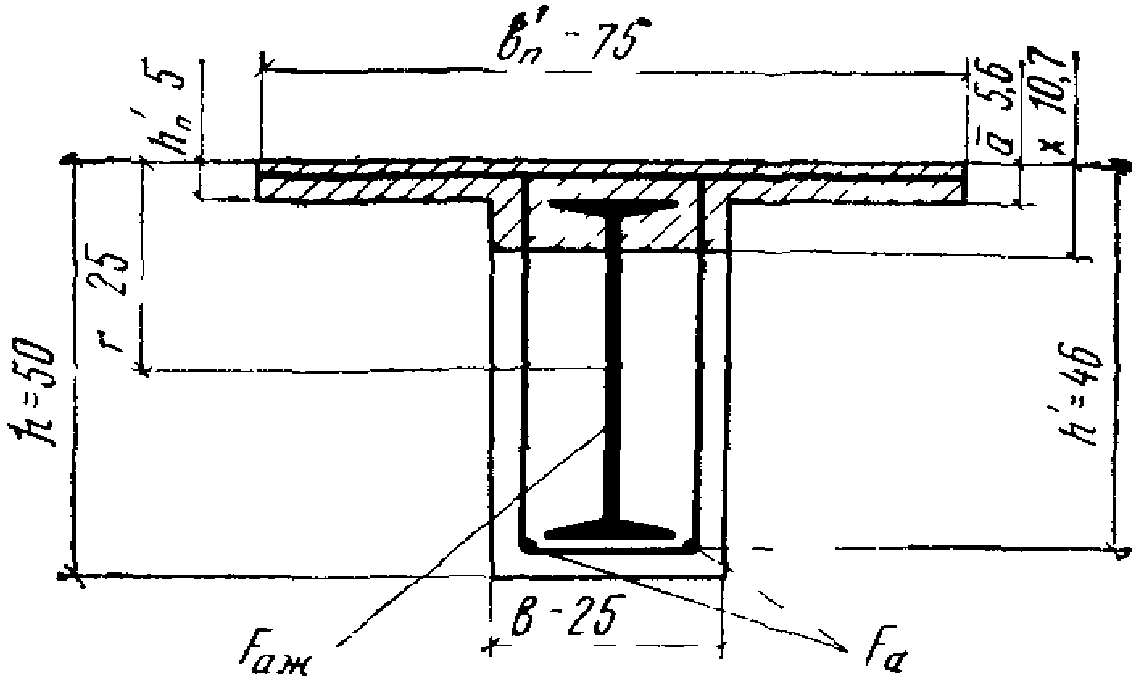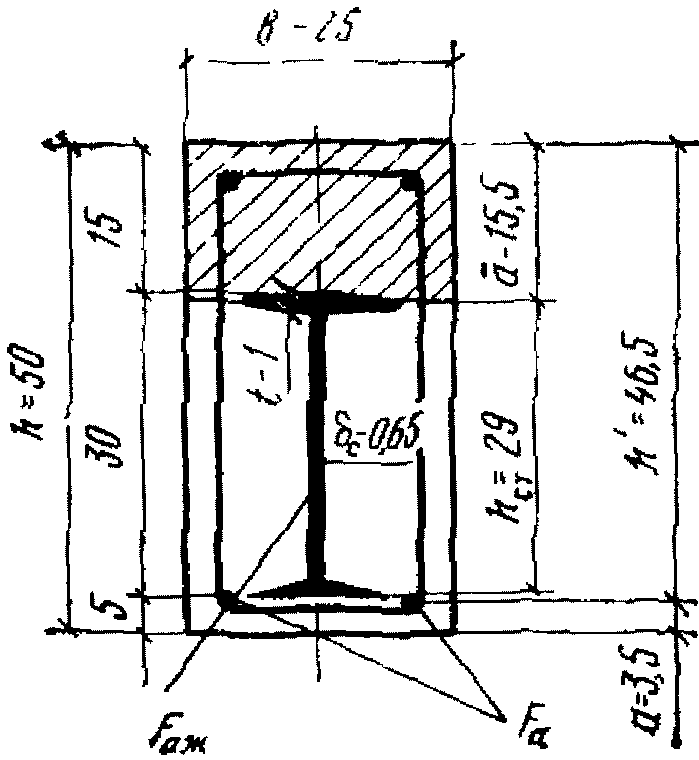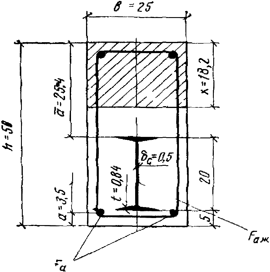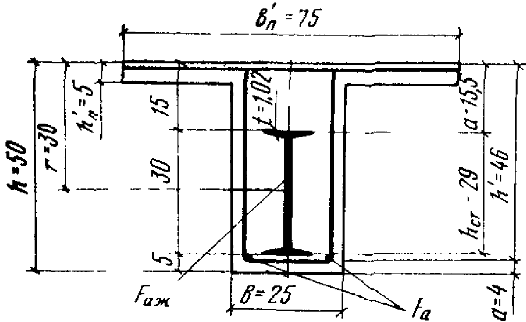 a - расстояние от сжатой грани бетона до оси верхней полки жесткой арматуры;