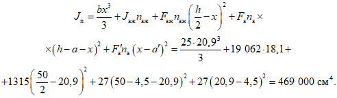 Jп приведенного сечения, определяемый без учета бетона растянутой зоны, равен