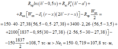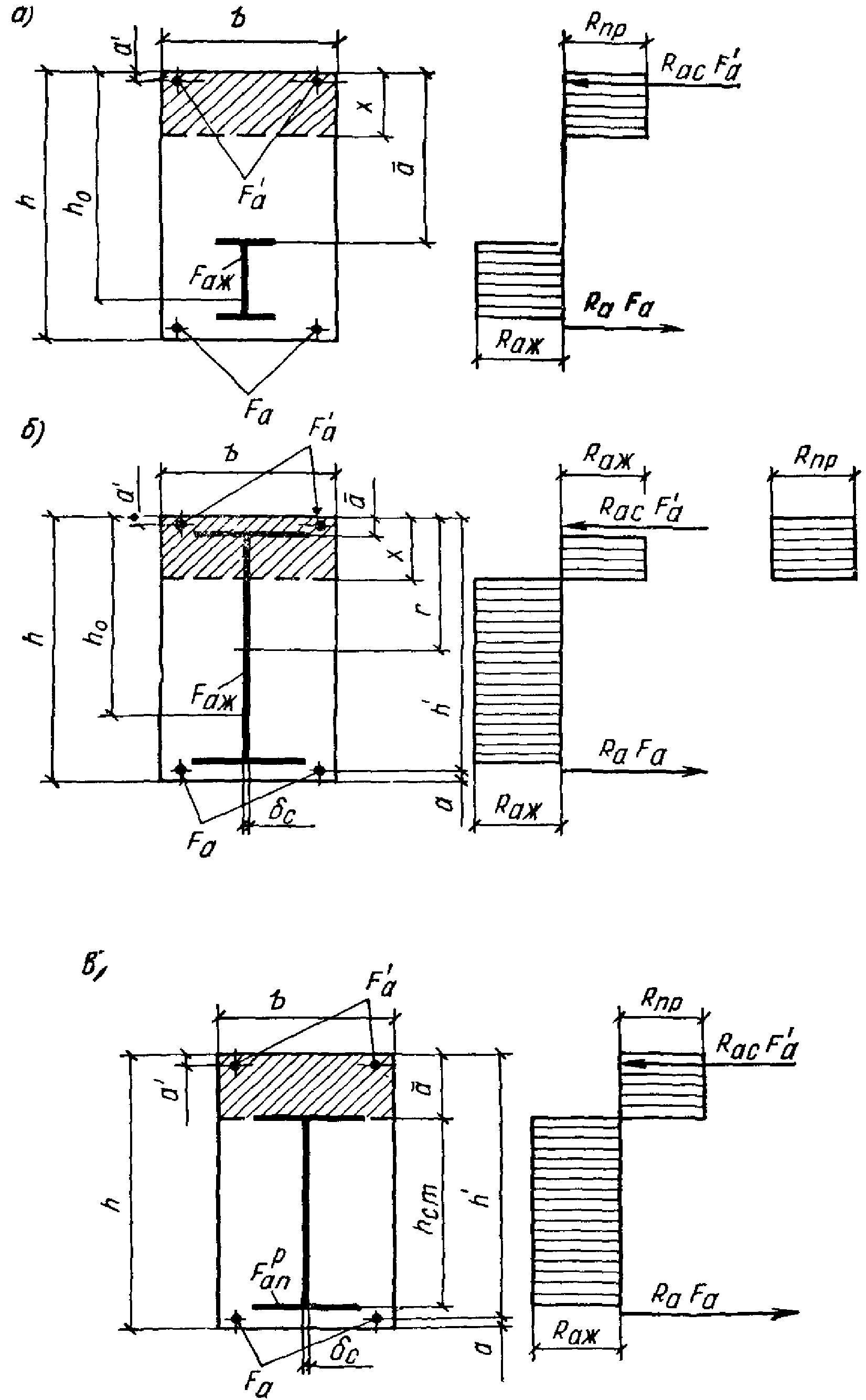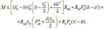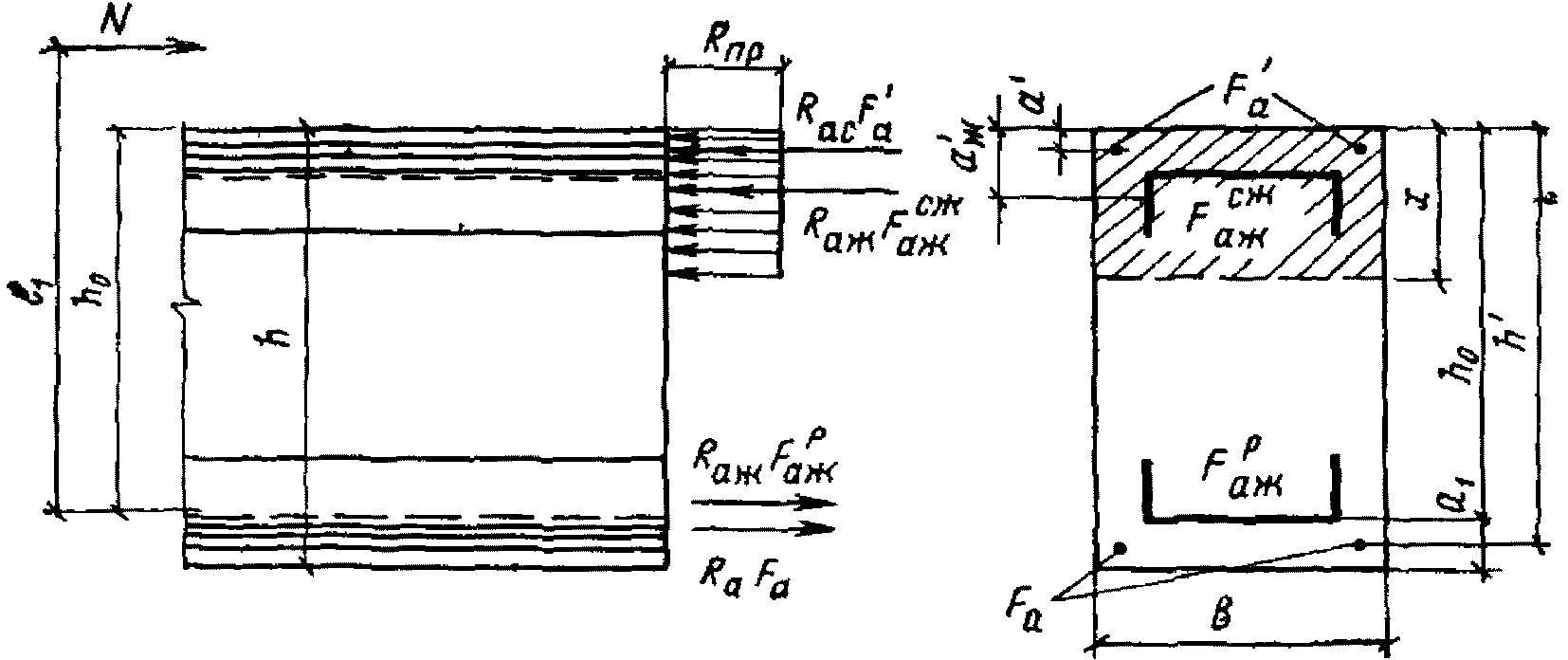h0 = h - a1 - рабочая высота сечения, равная расстоянию от сжатой грани бетона до равнодействующей усилий в растянутых жесткой и гибкой арматурах;