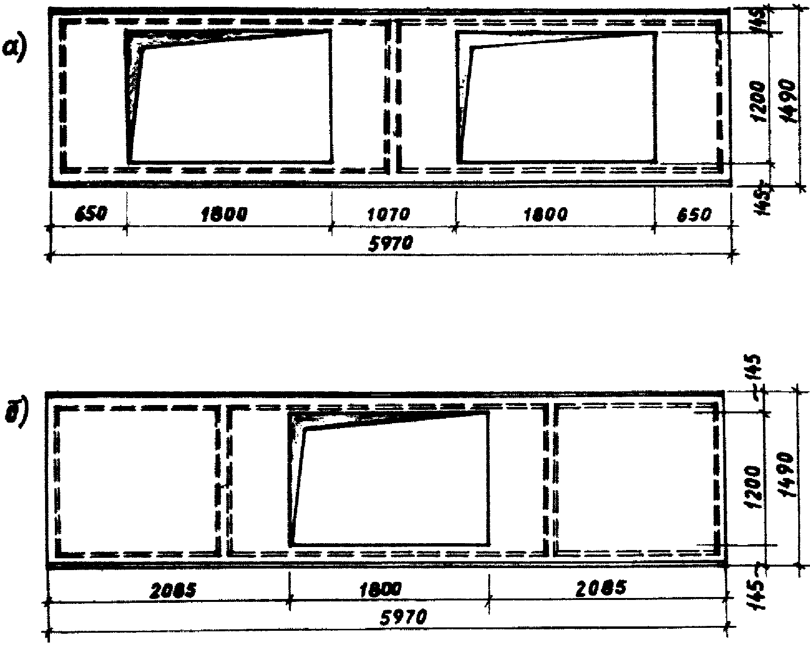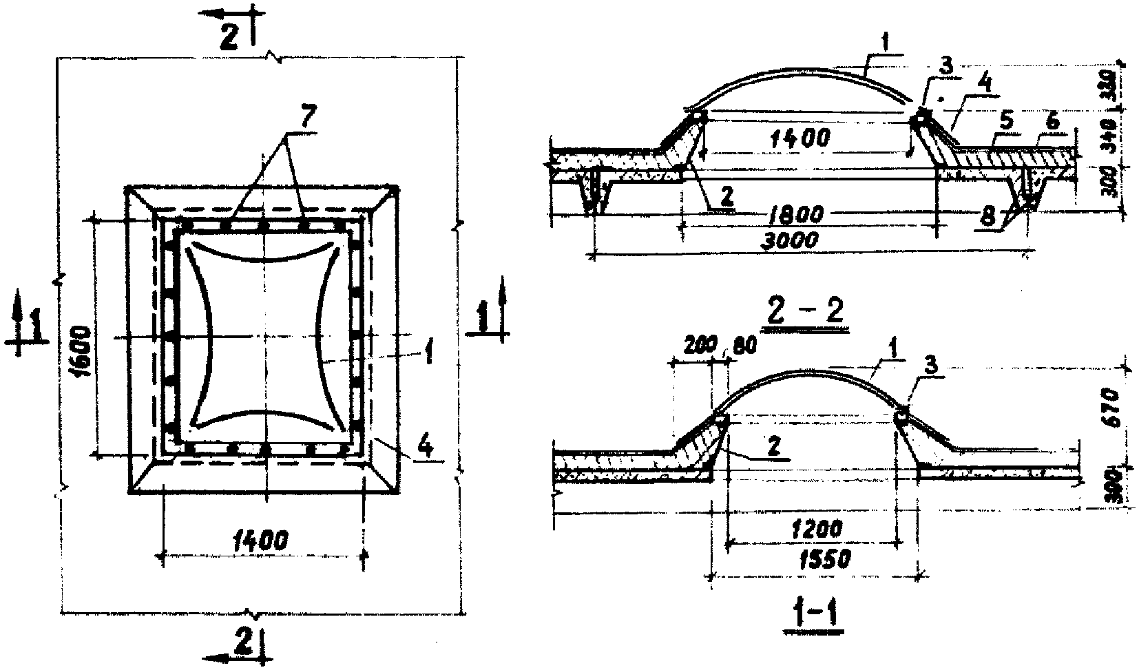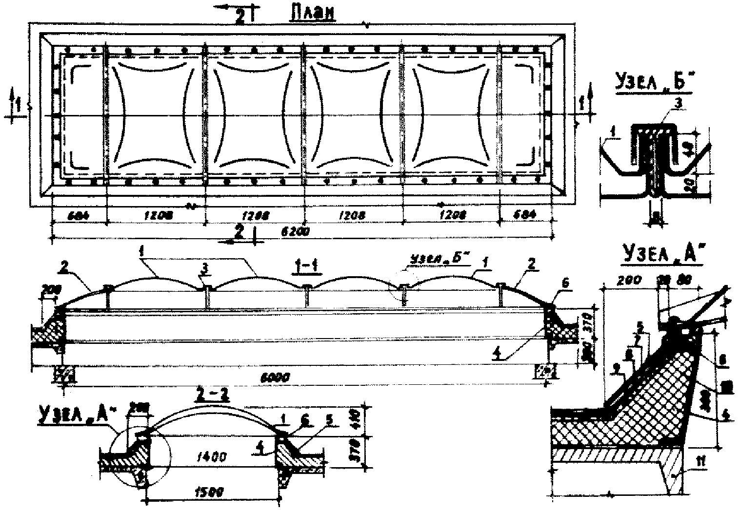 б) точечная, с размерами светового проема 1200 x 1400 мм на базе типовой железобетонной плиты 1,5 x 6 м