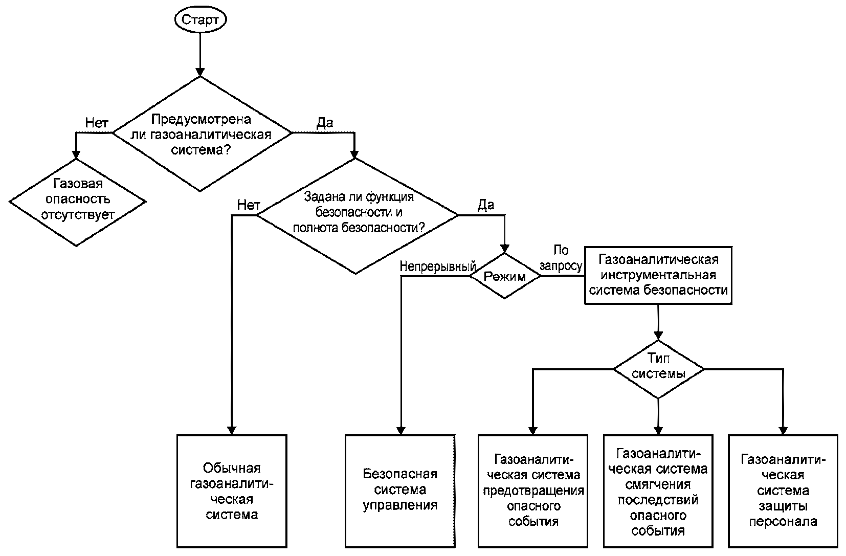Стационарные газоаналитические системы используются на протяжении многих лет для выполнения функций безопасности. Как любая измерительная система, стационарная газоаналитическая система, как правило, включает в себя одно- или многоканальные газоанализаторы (входные устройства), блок управления и одно- или многоканальные оконечные (выходные) устройства. В состав стационарной газоаналитической системы может быть дополнительно включено периферийное оборудование, например, устройства отбора пробы или устройства подготовки пробы. Если стационарная газоаналитическая система, включая соответствующее периферийное оборудование, эффективно используется для выполнения функций безопасности, важно, чтобы вся система соответствовала определенным минимальным требованиям и заданным характеристикам.