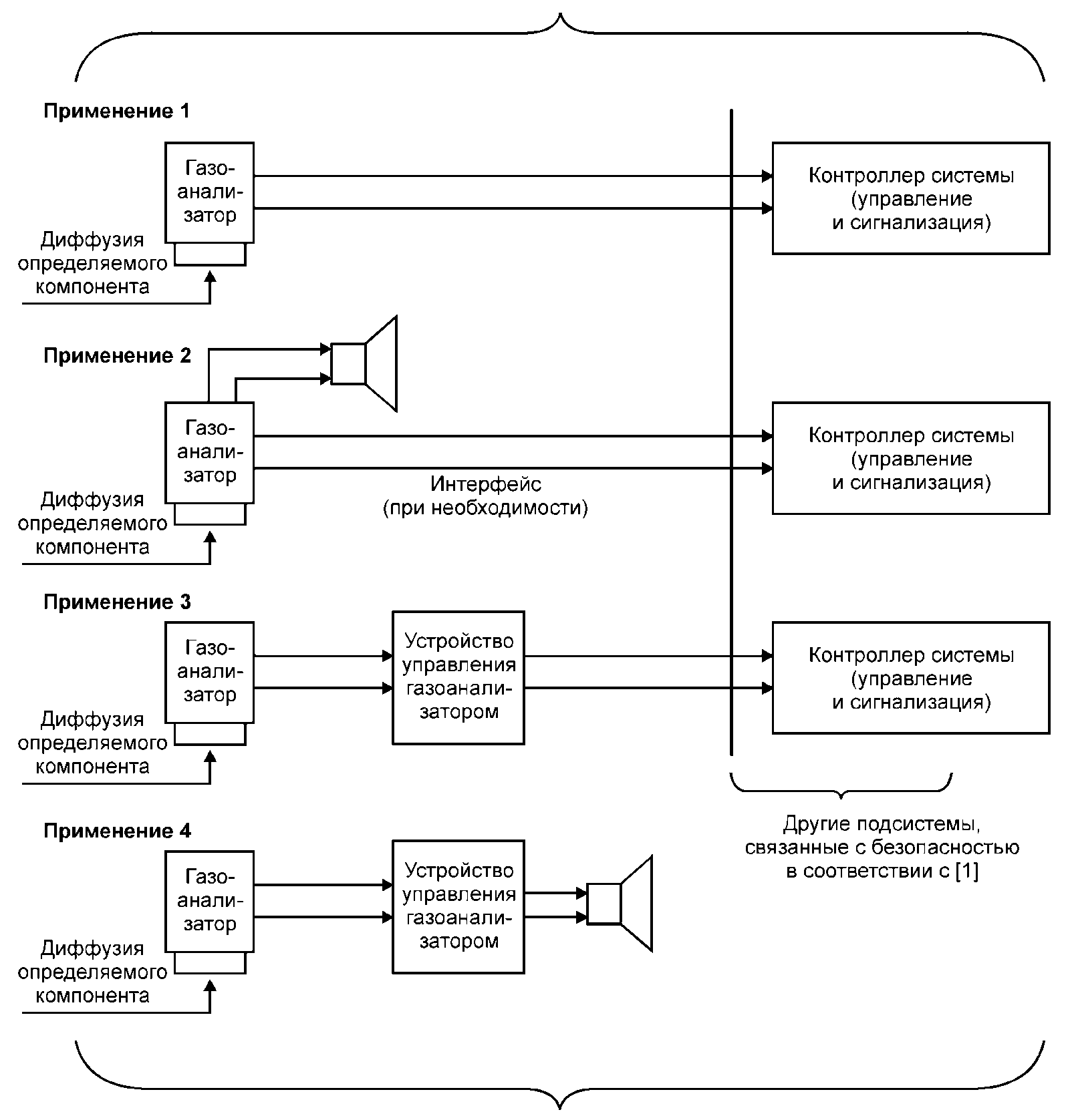 - применение функционально законченных газоанализаторов, которые интегрируются в общую систему безопасности изготовителем газоаналитического оборудования, продавцом или системным интегратором;