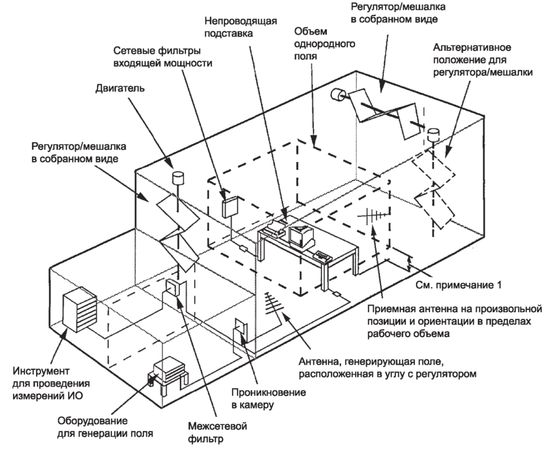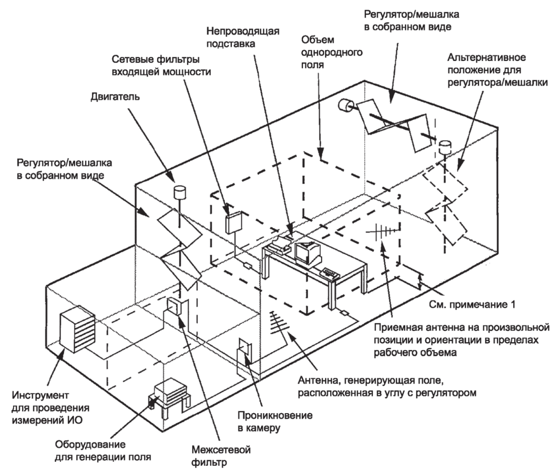 Примечание - В настоящем стандарте определены методы испытаний для измерения воздействия электромагнитного излучения на оборудование и электромагнитных излучений от соответствующего оборудования. Моделирования и измерения электромагнитного излучения недостаточно для количественного определения эффектов. Определенные методы испытаний организованы с целью установления адекватной воспроизводимости результатов испытаний и качественного анализа эффектов.