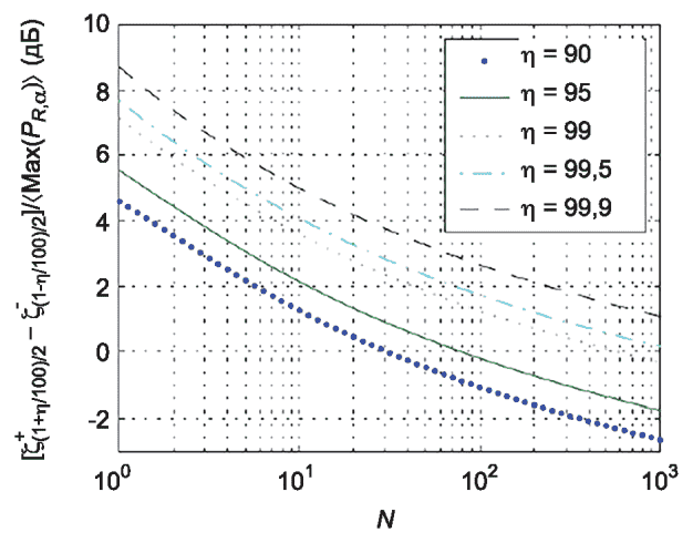 Рисунок K.3 - Средняя нормированная ширина (в дБ)