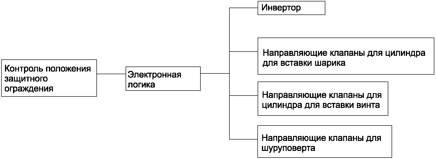 1V1 2V1 3V1 | Управление цилиндром вставки шарика A1 Контроль вставки винта цилиндр A2 Управление шуруповертом (пневмодвигатель) A3 | См. 1V0 | См. 1V0 | См. 1V0 | См. 1V0 |
