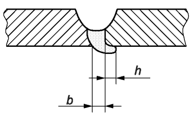 1.4 | 2025 | Незаваренный кратер | (продольное сечение) | 0,5 <= t <= 3 | h <= 0,4·t | h <= 0,3·t | h <= 0,2·t |