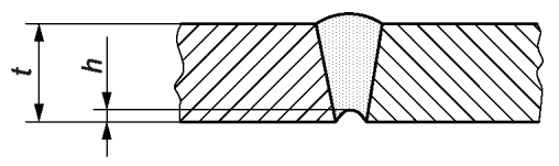 1.8 | 515 | Вогнутость корня шва. Подрез корня шва (стыковой шов) | | >= 0,5 | h <= 0,3·t, но не более 1 мм | h <= 0,2·t, но не более 0,5 мм | h <= 0,1·t, но не более 0,5 мм |