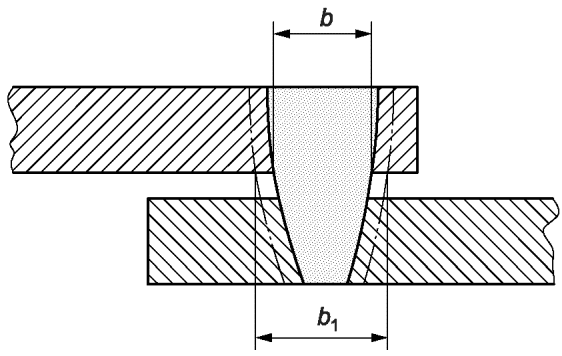 2.9 | - | Отклонение от требуемой ширины сварного шва для нахлесточных и Т-образных соединений | | >= 0,5 | b >= 0,85·b1 | b >= b1 | b >= b1 |