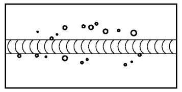 2.3 | 200 | Полость | Должны соблюдаться следующие условия и ограничения для дефектов: a) максимальный размер d (измеренный в любом направлении) для единичной поры; b) максимальная величина суммарной площади проекции дефектов. Проецирование производится в направлении, параллельном поверхности и перпендикулярном оси сварного шва. Это относится к площади, равной величине s, умноженной на длину сварного шва L, где длина шва считается фактической длиной сварного шва или 100 мм, в зависимости от того, что меньше | >= 0,5 | d <= 0,5·s или 5 мм, меньшее из этих значений f <= 6% | d <= 0,4·s или 3 мм, меньшее из этих значений f <= 4% | d <= 0,3·s или 2 мм, меньшее из этих значений f <= 2% |