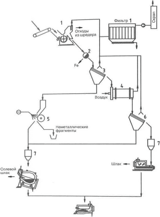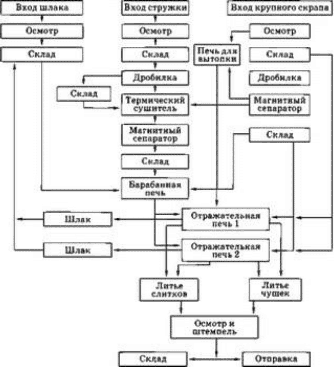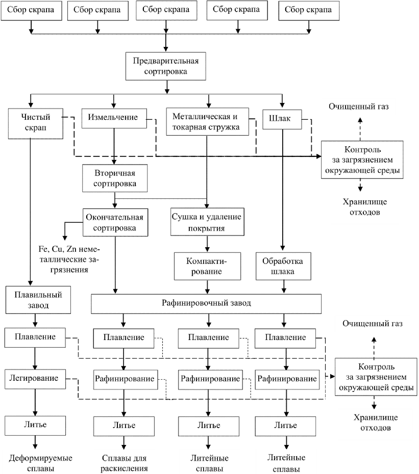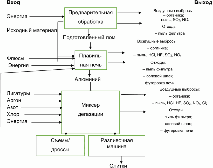 - процессы подготовки вторичного алюминиевого сырья для переработки;