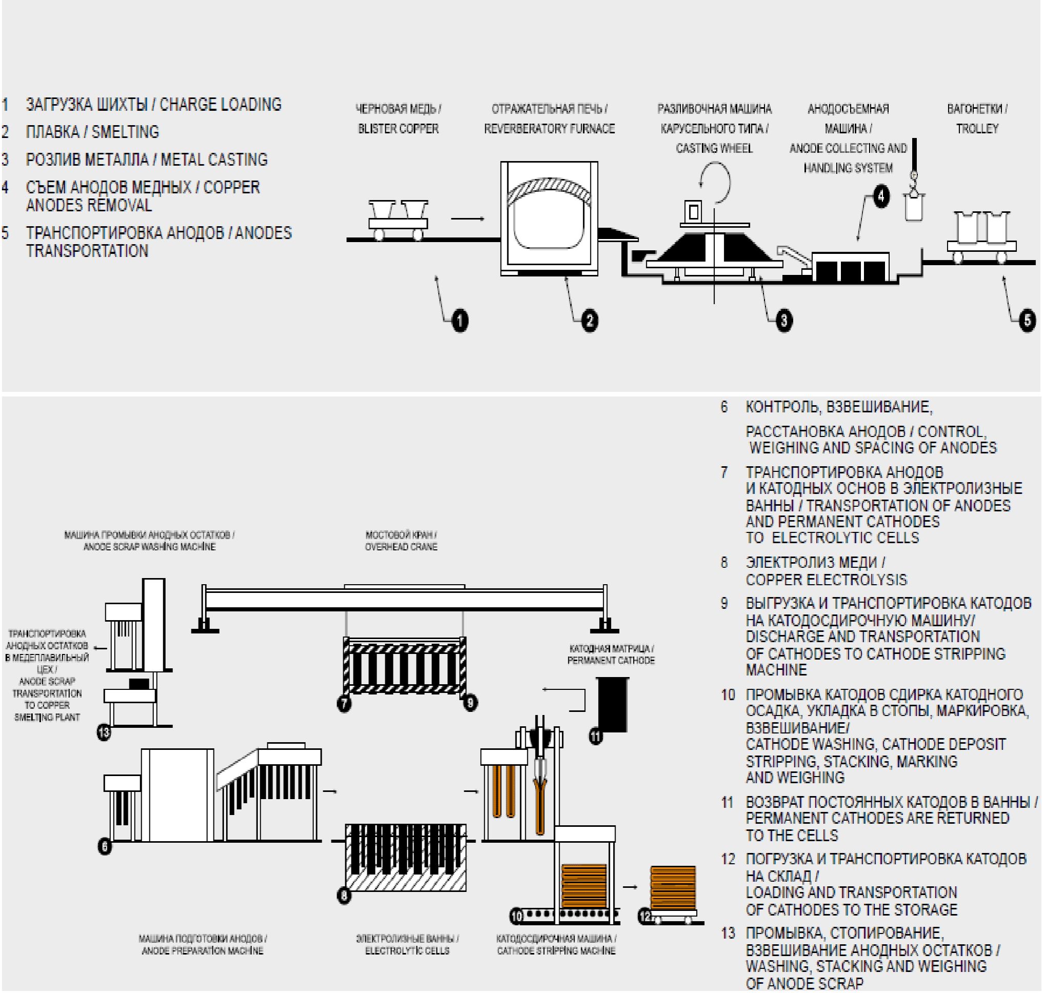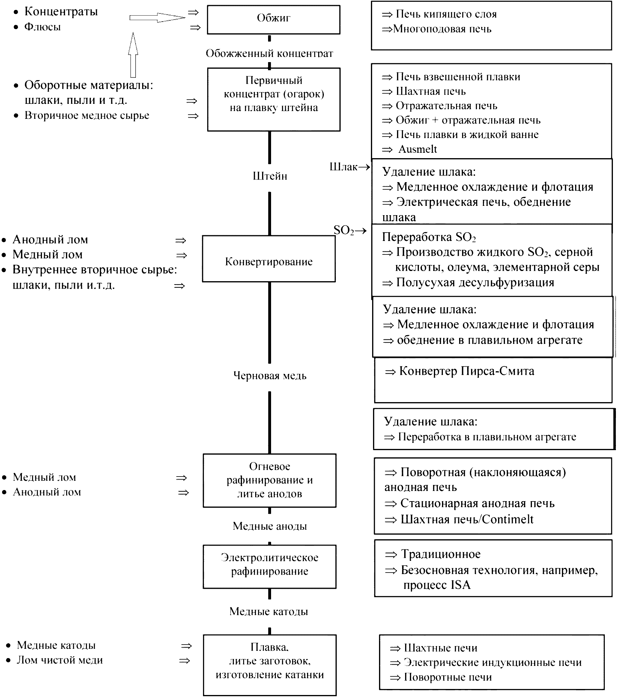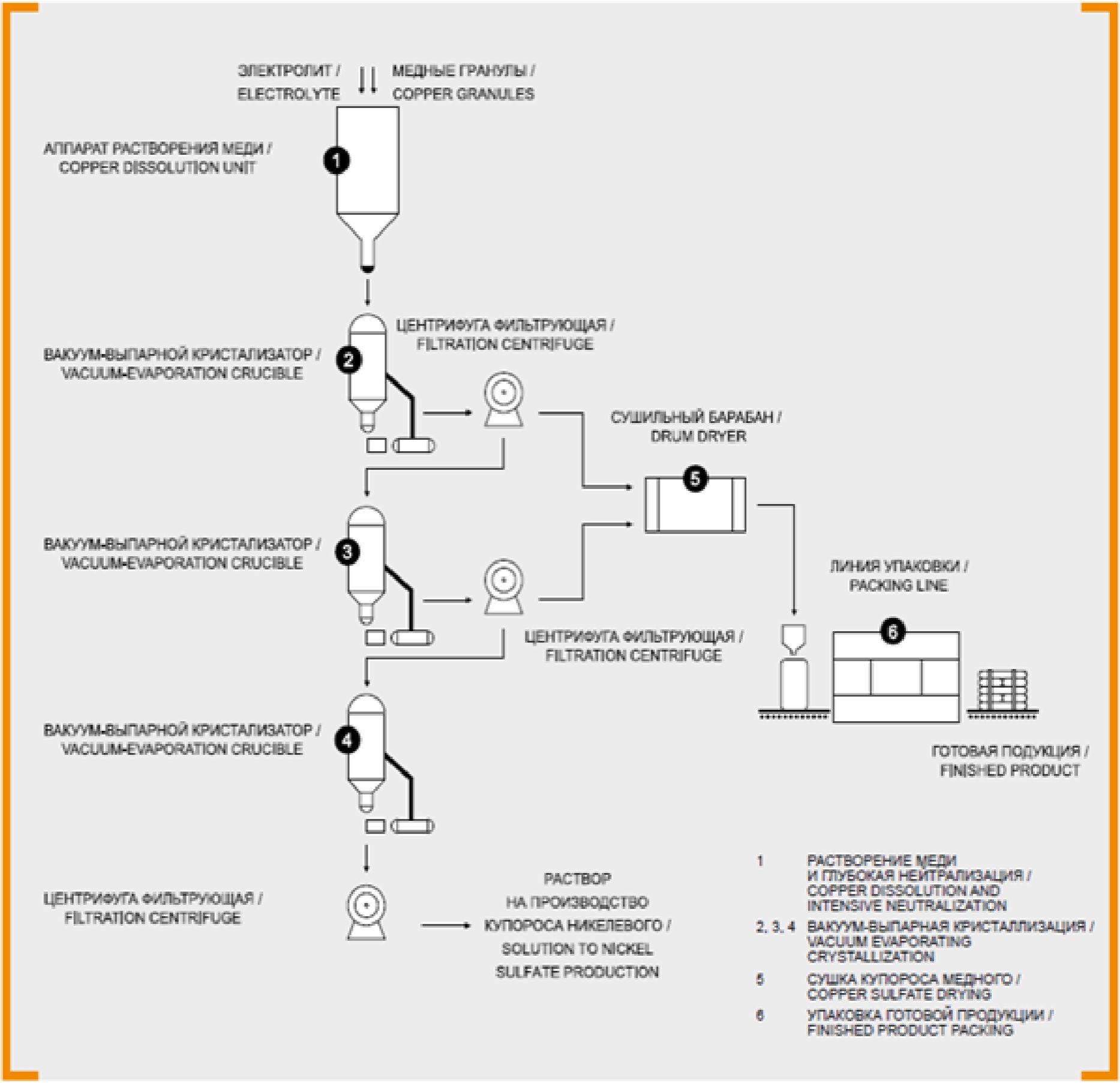 - производство меди из руд, концентратов или вторичных сырьевых материалов посредством пирометаллургических, гидрометаллургических, электролитических процессов;