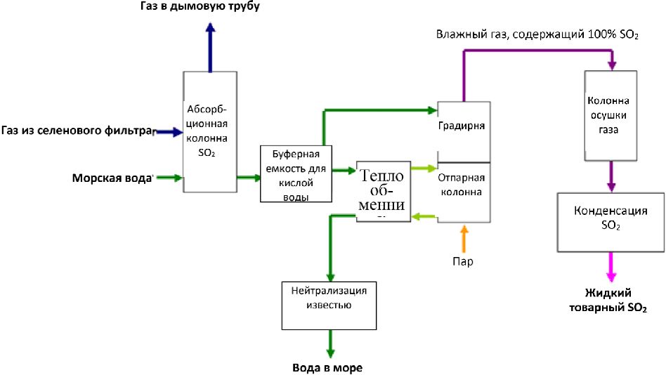 2 в отходящих газах от плавления меди путем направления их на производство серной кислоты, жидкого диоксида серы, элементарной серы или других аналогичных продуктов