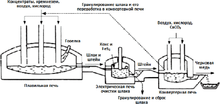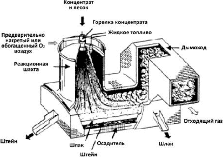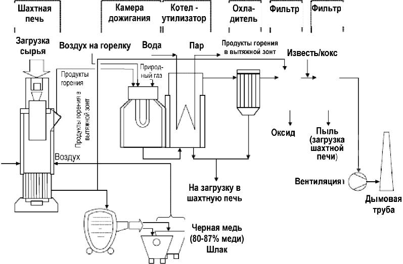 - пирометаллургическом производстве меди;