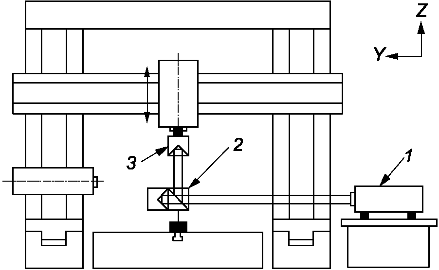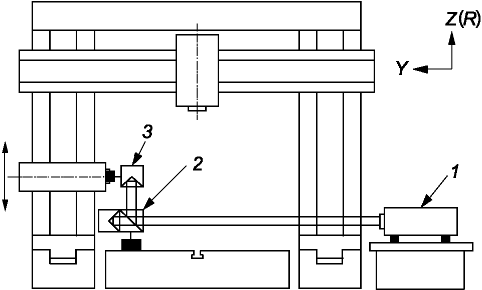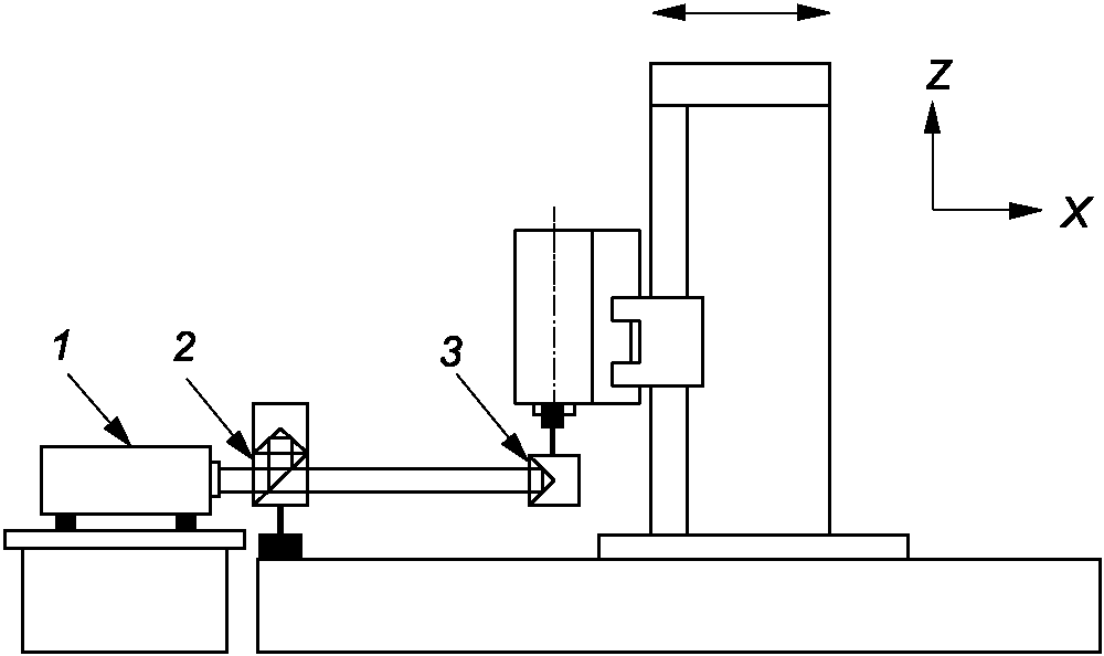 Схема ![]() 1 - лазерная головка; 2 - интерферометр; 3 - световозвращатель | ||||