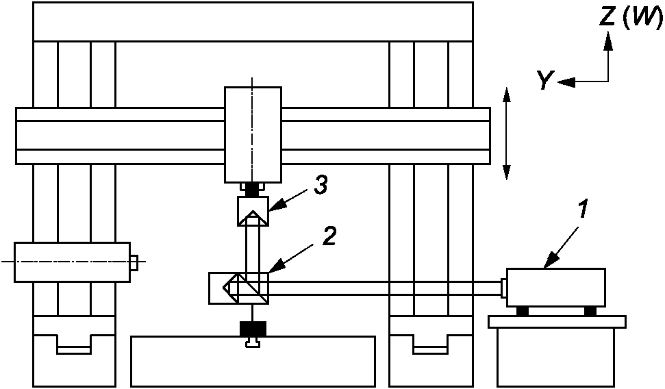 Проверка параллельности вертикального перемещения подвижной перекладины (ось W) движению оси Z: | ||