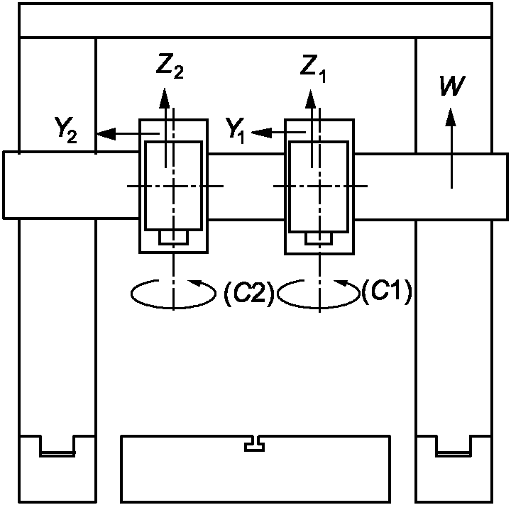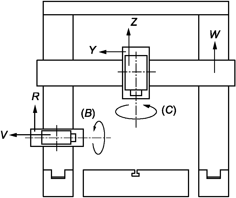 W | mouvement vertical de la traverse mobile (axe W) | bewegliche traverse, vertikale bewegung (W-achse) | movimento verticale della traversa mobile (asse W) | ![]() | ![]() |