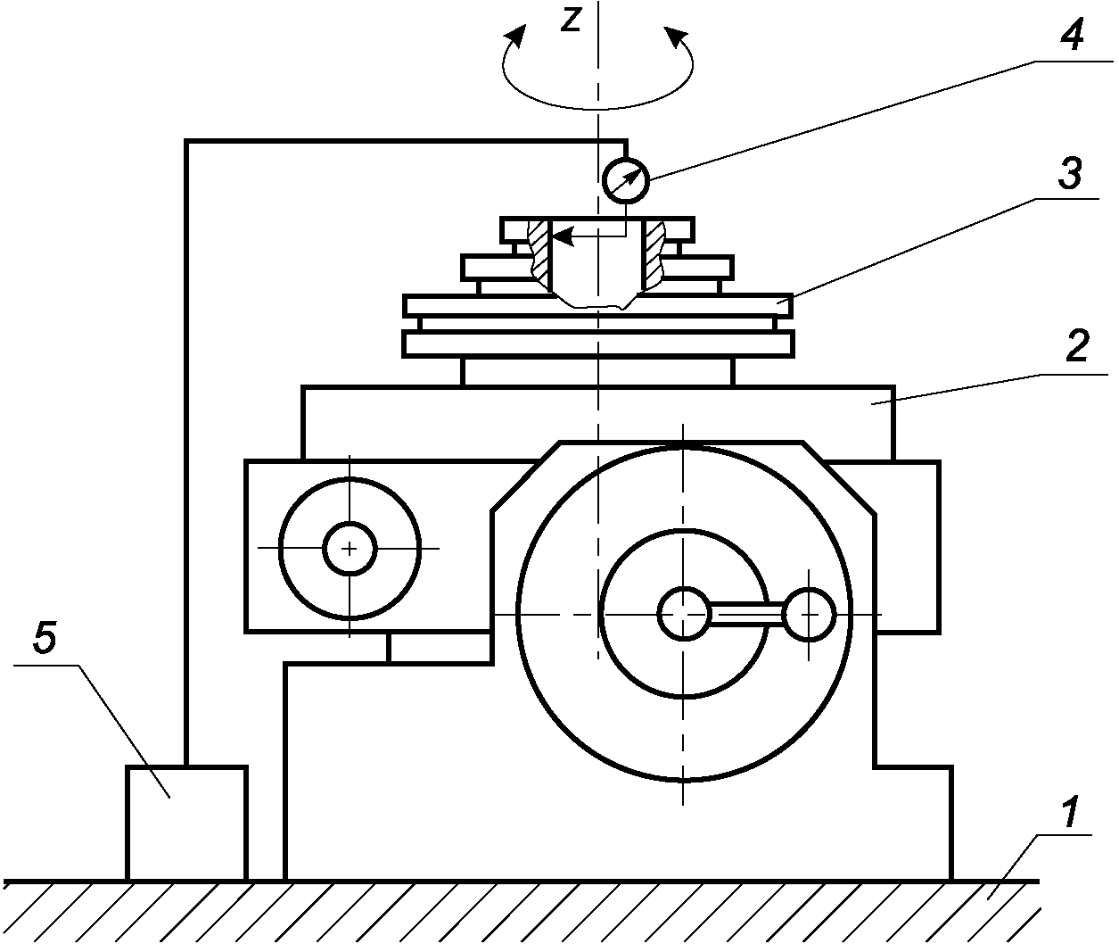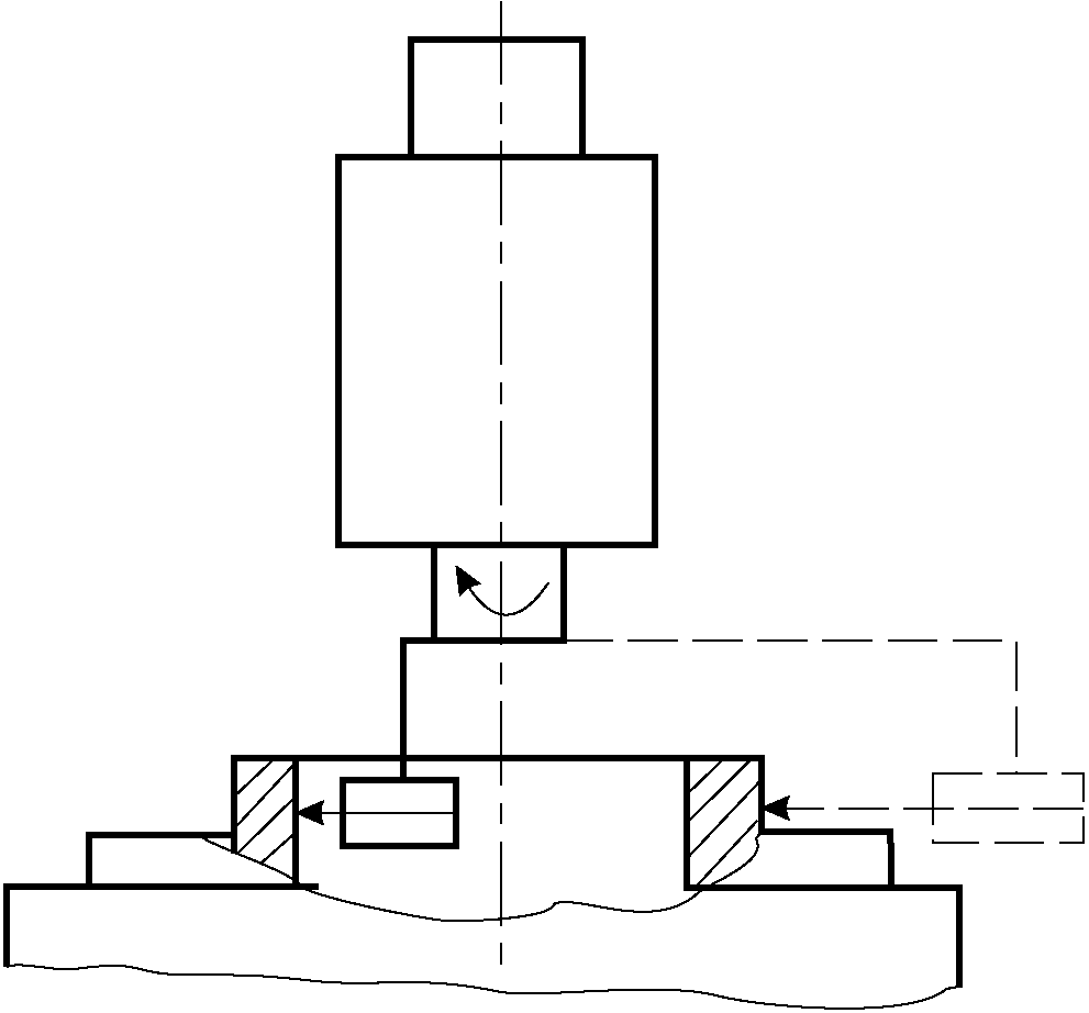 а) универсальный делительный поворотный стол по ГОСТ 16163, точность угла поворота планшайбы не более 3", радиальное биение оси вращения планшайбы не более 2 мкм;