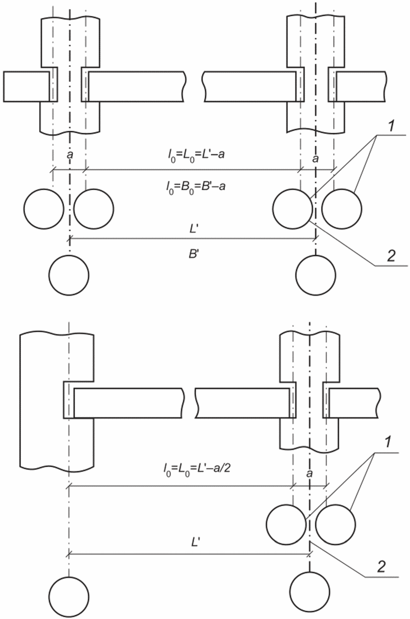 Если во внутренних несущих стенах толщиной 300 мм и более применяют парные координационные оси (заменяемые в проектной документации одной разбивочной осью), координационная длина плиты должна равняться расстоянию между разбивочными осями здания за вычетом координационного размера вставки или половины координационного размера вставки, указанному на