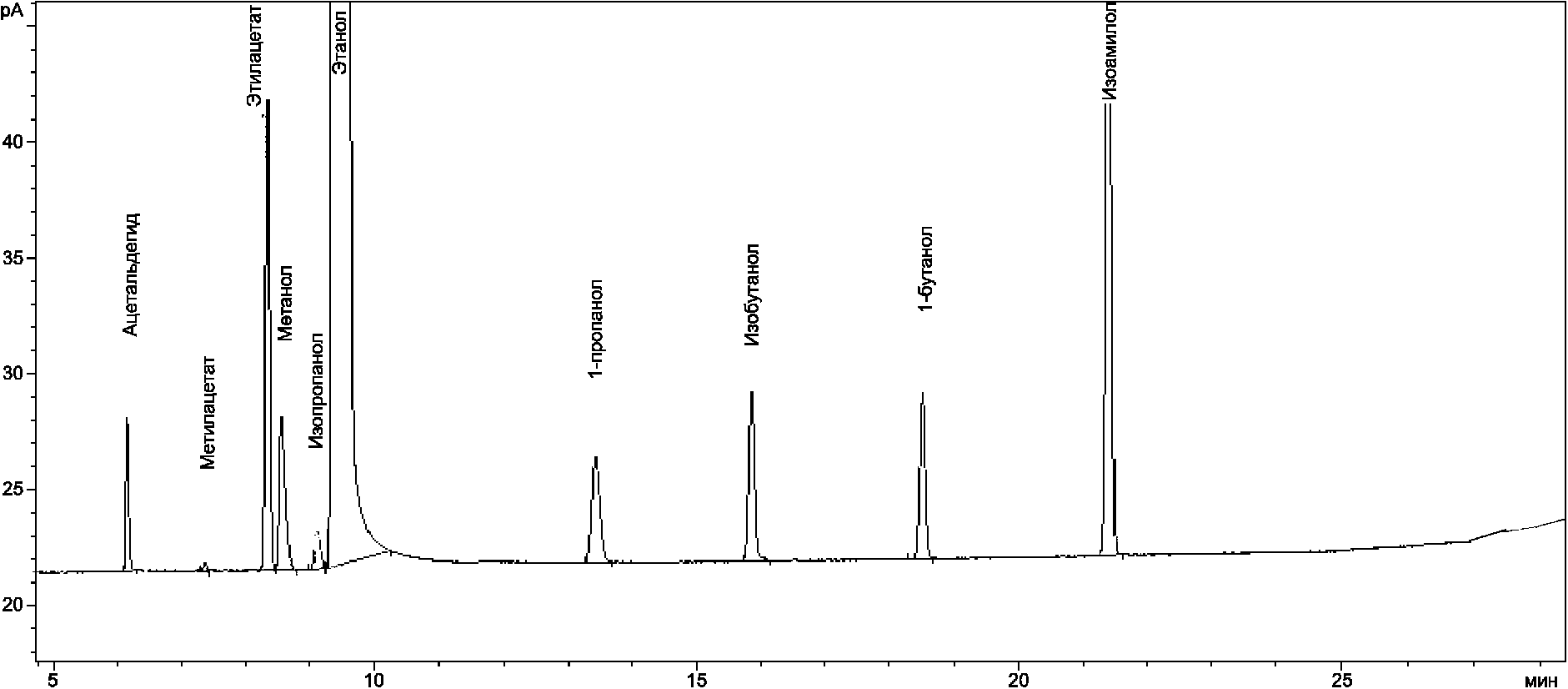 Этилацетат, метанол, изопропанол, пропанол, изобутанол, бутанол, изоамилол | 7 | 13 | 10 |