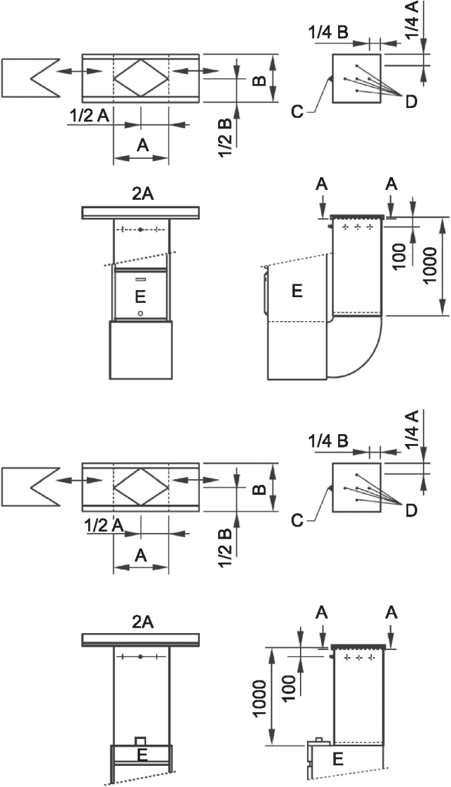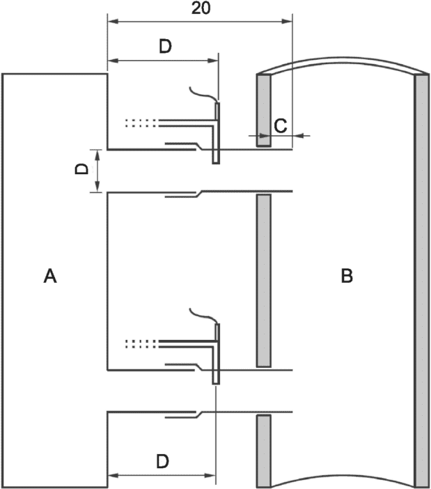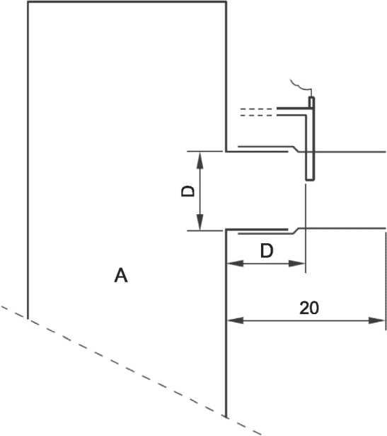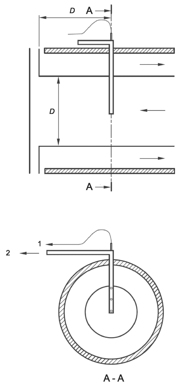 Для выпускных труб продуктов диаметром менее 75 мм необходимо использовать зонд меньшего размера с выбранными d и x таким образом, чтобы:
