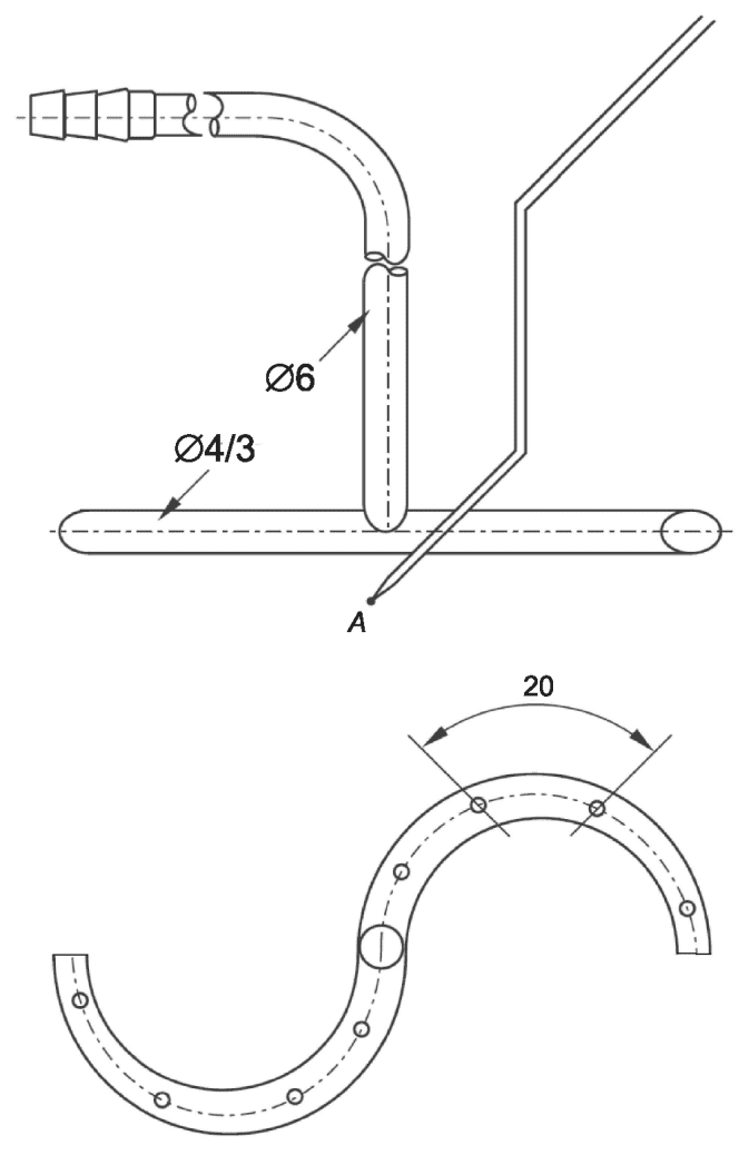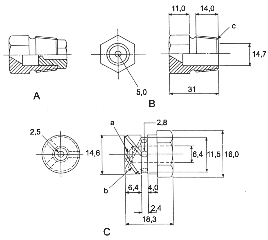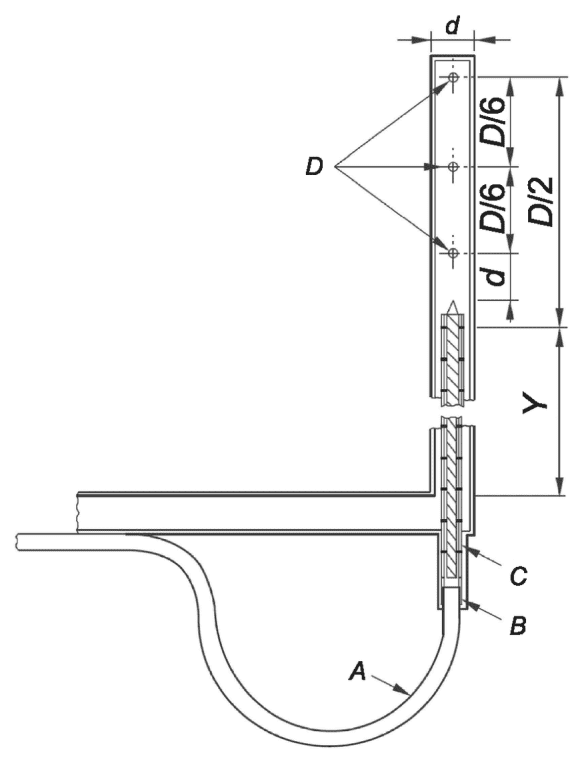 c) диаметр отверстий для присоединения пробоотборника давления (D) 1,0 мм;