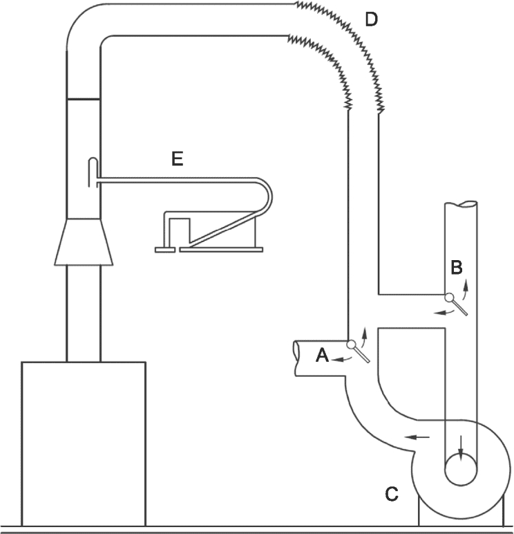 d) приборы с ручным или автоматическим устройством настройки подачи воздуха для горения при помощи заслонок газохода;
