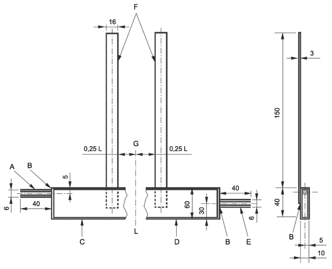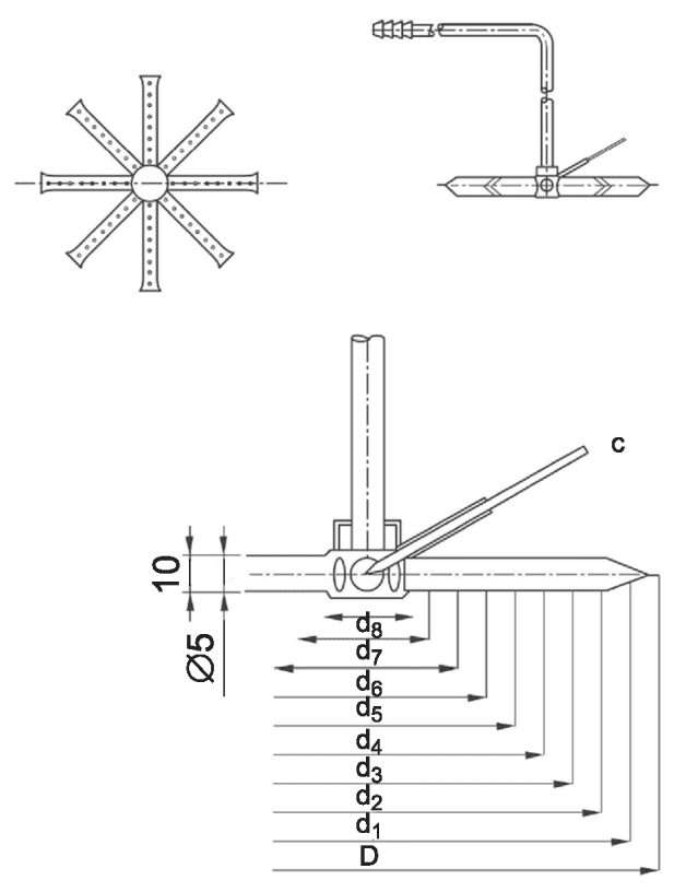 3 Размеры зонда диаметром 6 мм (подходящего для выпускных труб продукта диаметром (D) более 75 мм):