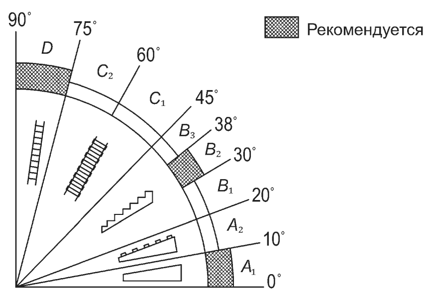 Рисунок 3 - Угол наклона от 20° до 45° для лестницы