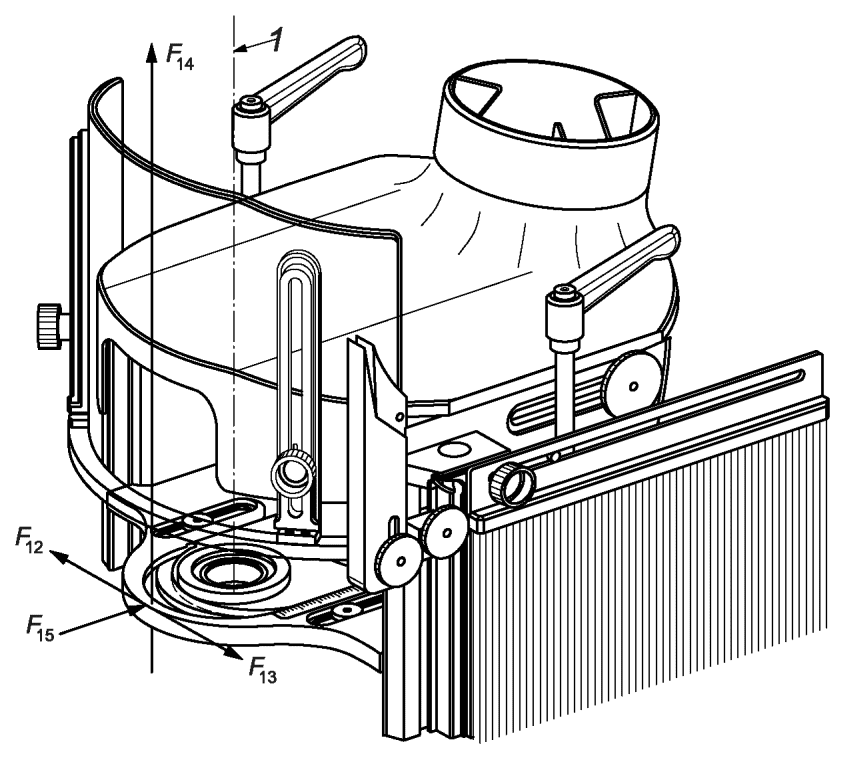 1 - ось оправки; F12 - F15 - усилия, прилагаемые