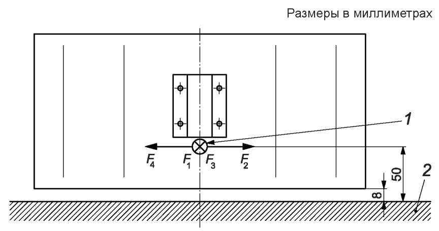 F11, которые должны быть приложены к испытуемому перемещаемому ограждению, а также положение точки измерения.