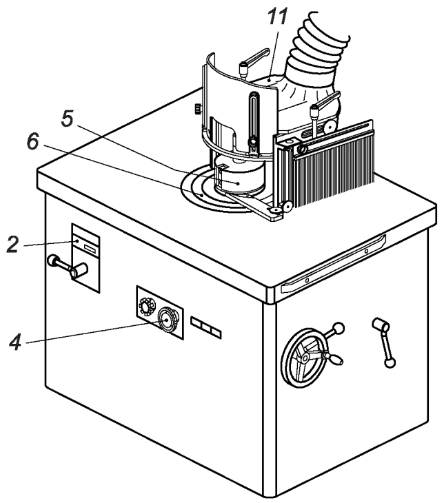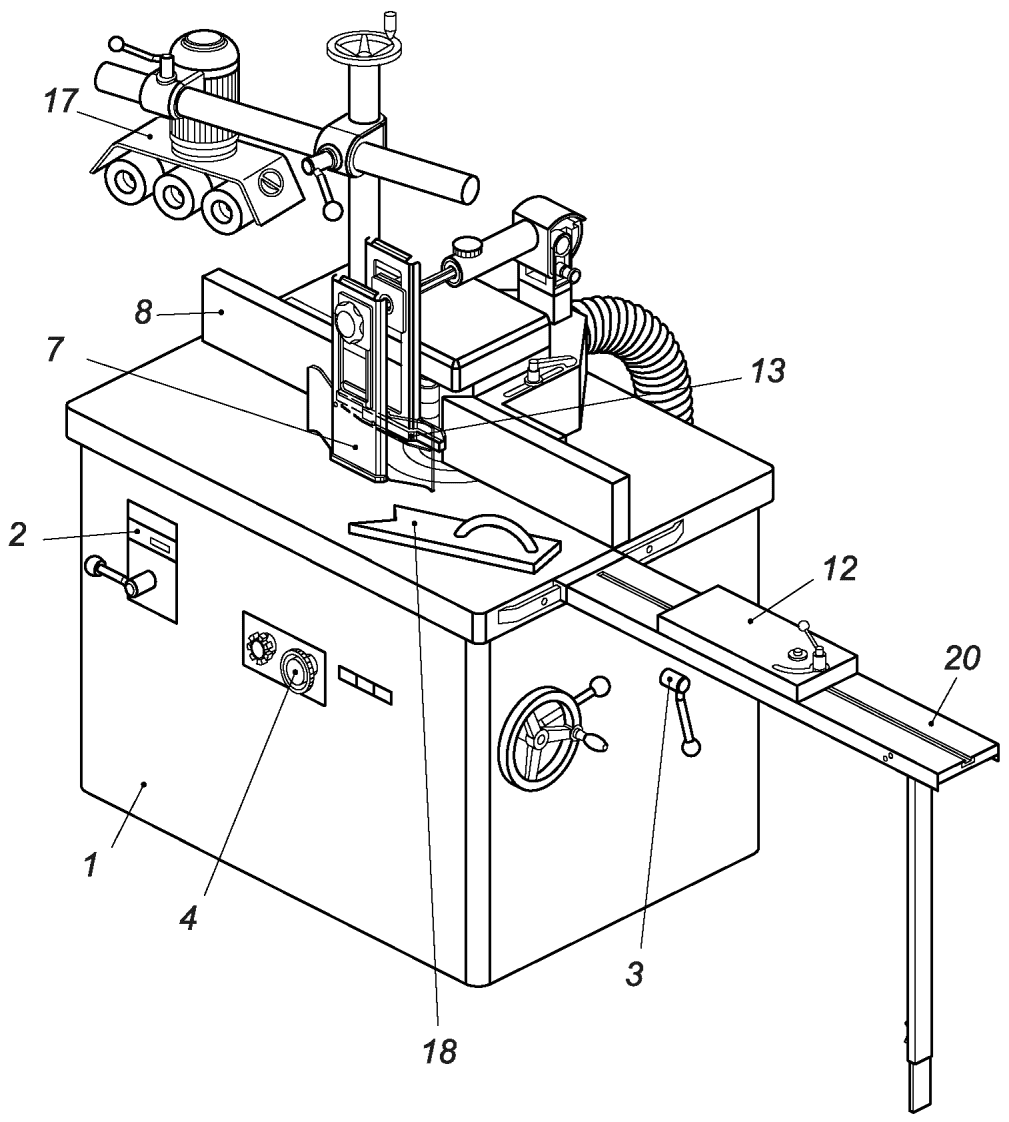 3.1 фрезерный вертикальный станок с нижним расположением шпинделя (single spindle vertical moulding machine): Станок с ручной подачей, снабженный одной вертикальной оправкой, которая неподвижна во время операции резания, и горизонтальным столом, который неподвижен полностью или частично во время операции резания.
