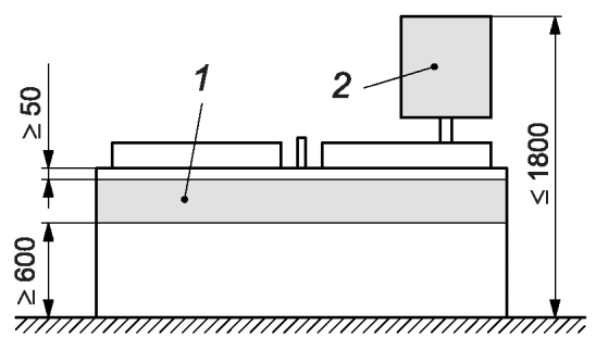 Примечание 1 - Шпиндель проходит сквозь стол, а его привод расположен под столом.