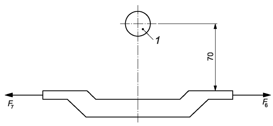 1 - оправка; F6, F7 - усилия, прикладываемые при испытании