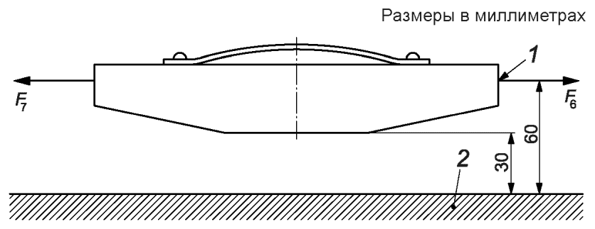 F7, которые должны быть приложены к испытываемой накладке прижима к столу, вместе с положением точек измерения.